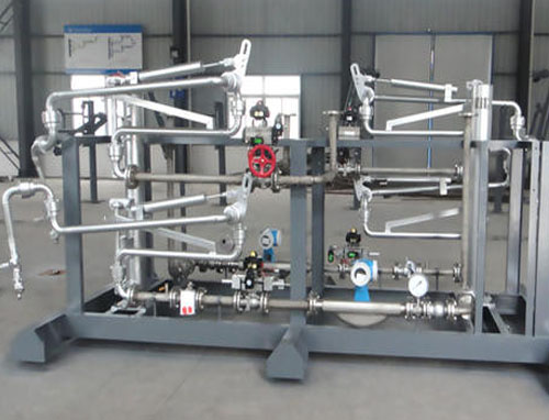 油品定量裝車橇裝組是指將每一個裝車鶴位內的儀表和設備集成在一個專用的框架結構內,儀表和設備包括裝車鶴管、流量計、防溢油靜電報警控制器、壓力變送器、裝車流量控制閥、緊急切斷閥,裝車泵、批量控制器等, 只預留工藝連接口和控制電源和通訊接口,這個整體集成部分稱為裝車橇。與傳統(tǒng)的裝車控制系統(tǒng)就地組裝比較,裝車橇可以節(jié)省現(xiàn)場設計和現(xiàn)場施工量,縮短項目工期,提高裝車控制系統(tǒng)的質量。